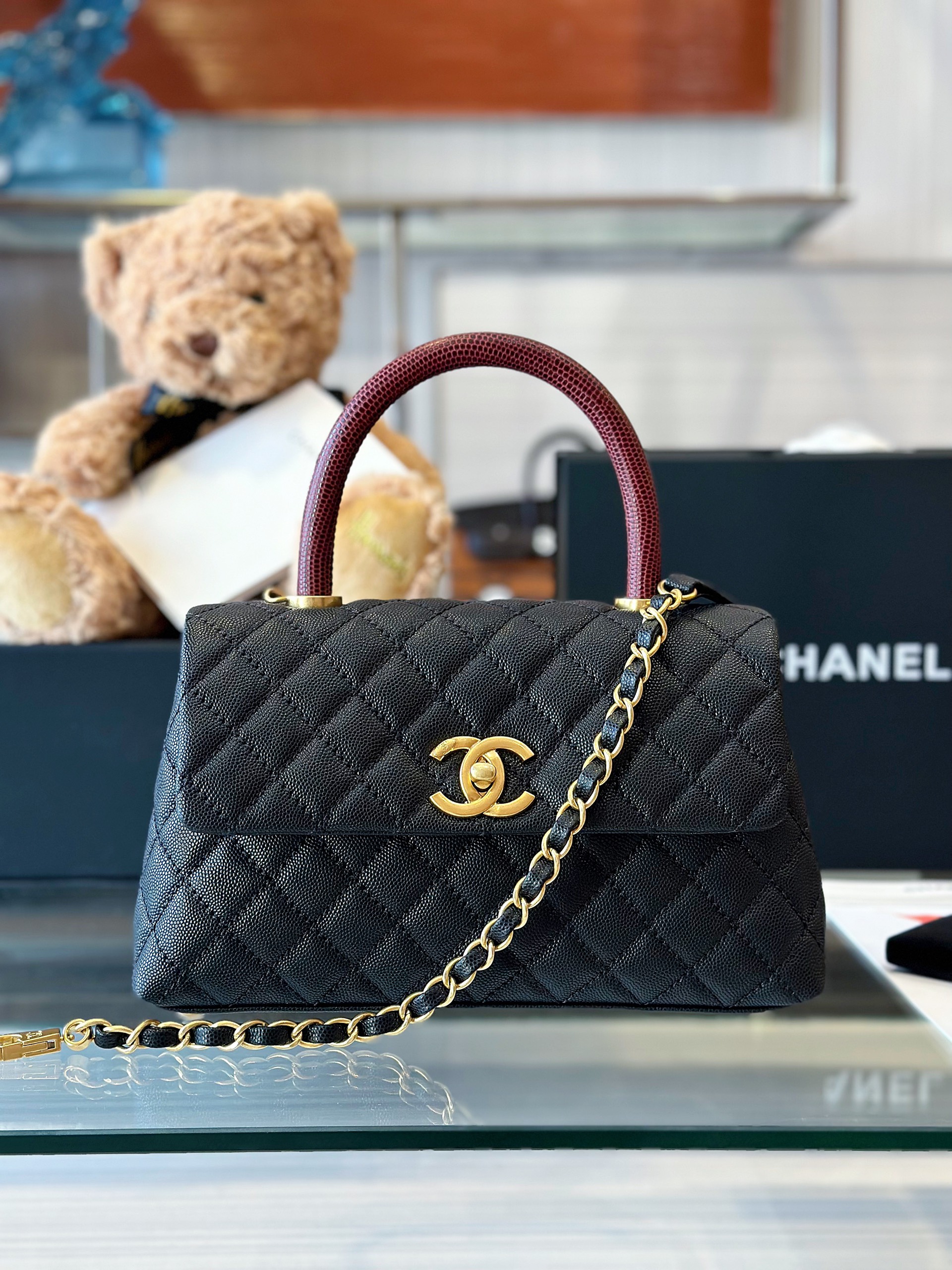 Chanel Handbag Coco Lock Gold Lizard Skin Black 24cm