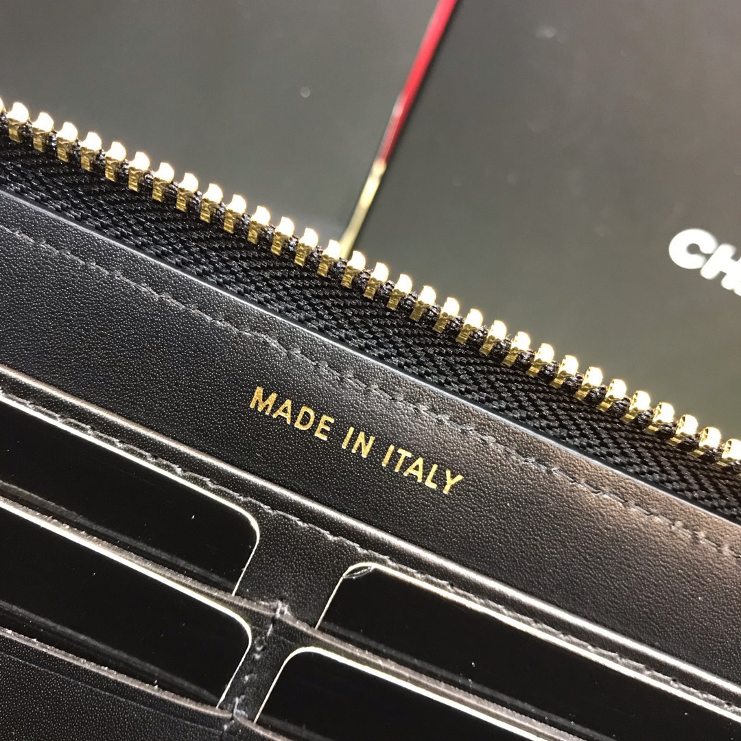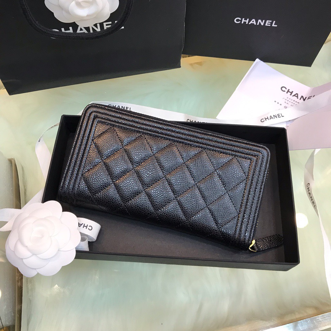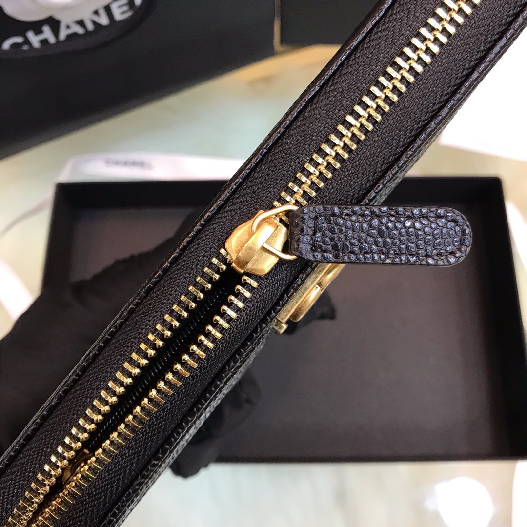 Chanel Wallet Black Grained Leather Gold Lock 19×10.5cm