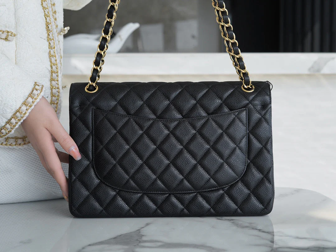 CHANEL FLAP BAG JUMBO 30CM GOLD HARDWARE BLACK CAVIAR