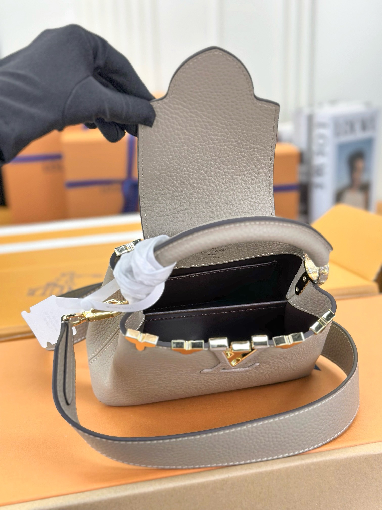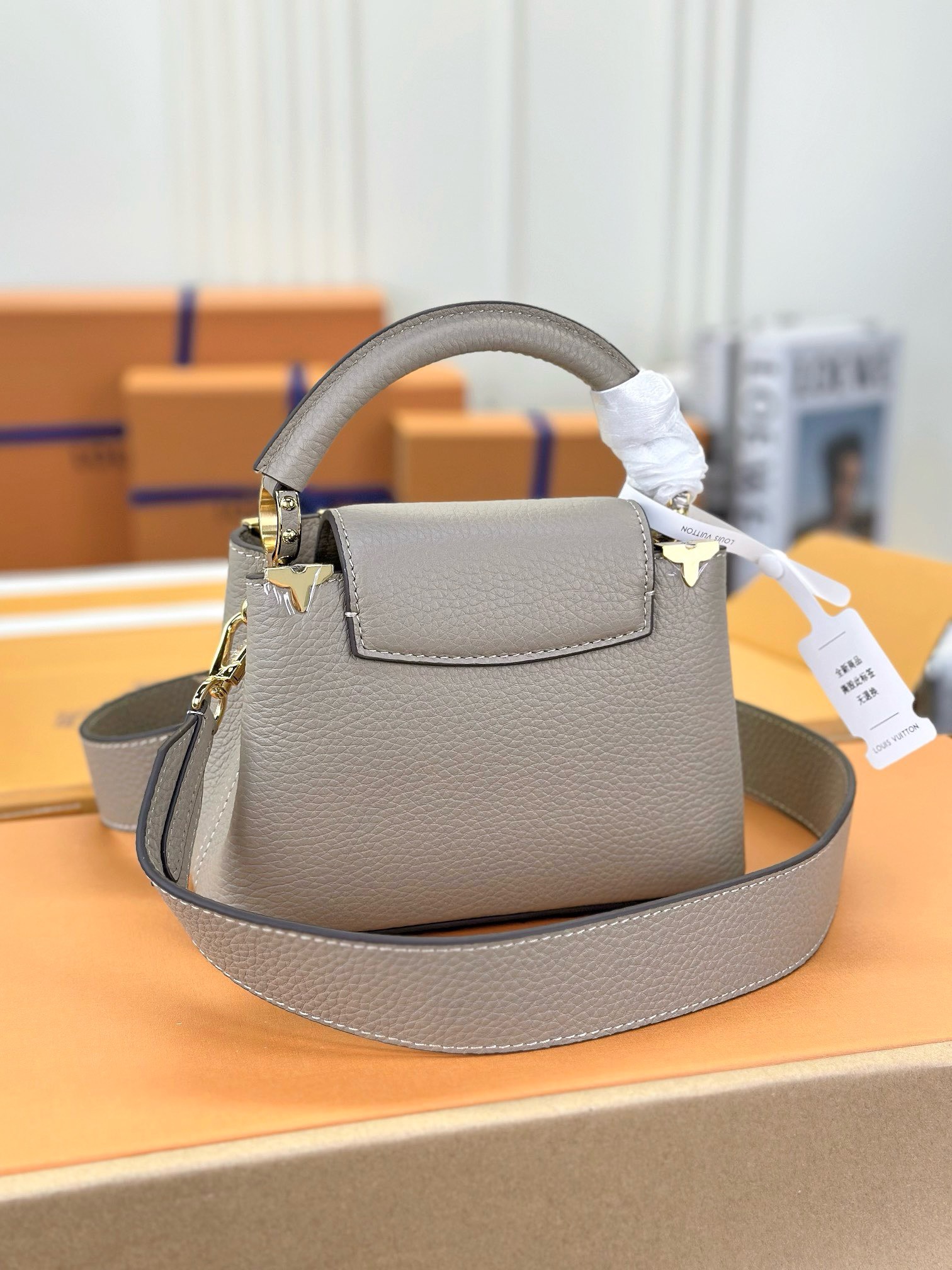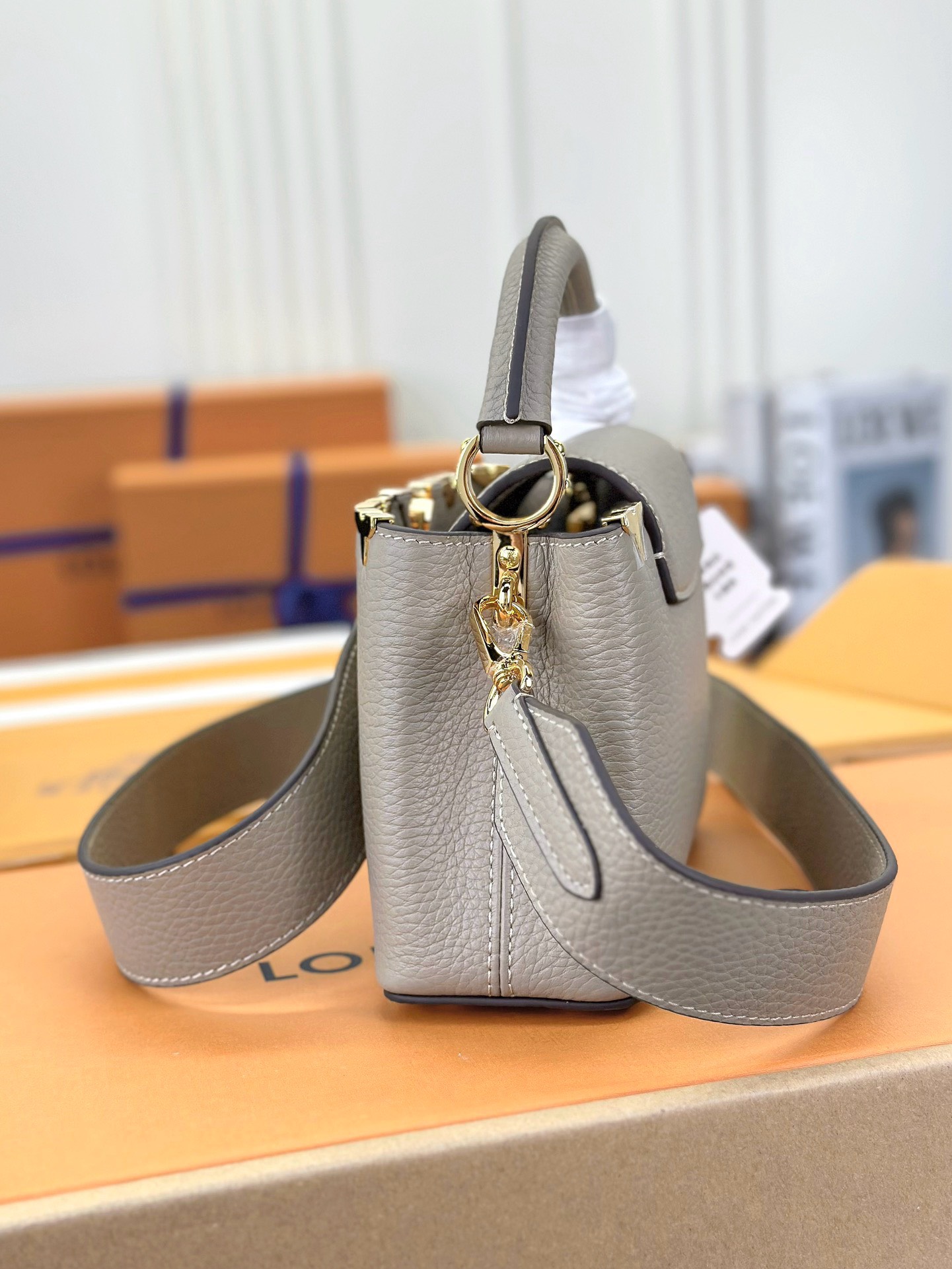 Be the first to review “Louis Vuitton LV Capucines Lock Gold Handbags Cowhide Leather 21cm”