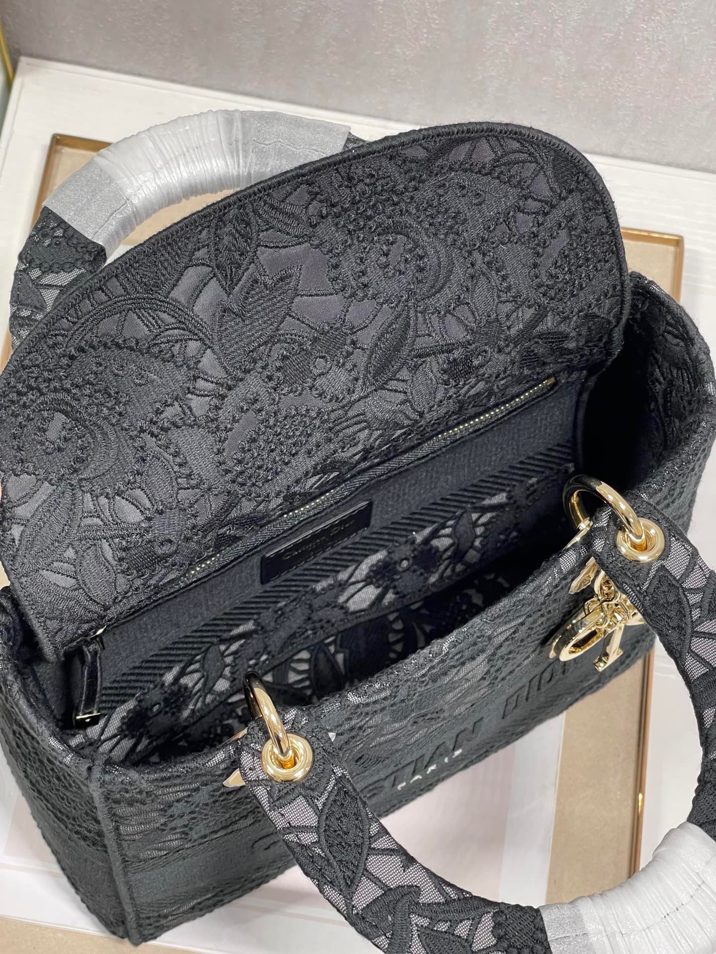Túi Xách Dior Lady Họa Tiết Ren Hoa Nữ Màu Đen Rep 11 Cao Cấp 24cm
